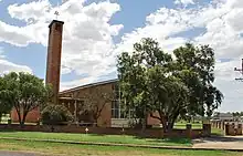 Our Lady of the Southern Cross Catholic Church is on the western corner of George and Elizabeth Streets (28°24′49″S 151°04′50″E / 28.4136°S 151.0806°E).[23]