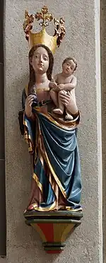 The Inkpot Madonna (German: Tintenfassmadonna) is a late-Gothic sculpture of Mary in the Hildesheim Cathedral, a building on the UNESCO World Cultural Heritage list since 1985, which is consecrated to the Assumption of Mary. The coloured life-size wooden statue was created around 1430, probably in Lower Saxony, and has the hallmarks of the international Gothic style: a tender face, loose posture and flowing drapery.