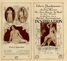 Inspiration is a 1915 American silent drama film directed by George Foster Platt and written by Virginia Tyler Hudson and starring Audrey Munson,[1] an artist's model known at the time for posing for several statues in New York City and the 1915 San Francisco Panama–Pacific International Exposition. It is believed to be one of the first non-pornographic American films to feature full nudity, with Munson frequently appearing naked as a sculptor's model. On its reissue in 1918, the film was renamed as The Perfect Model.