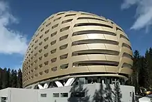 The AlpenGold Hotel, formerly branded as InterContinental, is a luxury hotel located in Davos, Switzerland.[1] Opened in 2013 to serve as a vacation and business resort in the Grison Alps, it was managed under the brand InterContinental, one of the world's major luxury hotel and resort brands. The building is known worldwide for its "golden egg" architecture;[2] it is the main hotel supporting the annual January meeting of the World Economic Forum (WEF) in Davos.