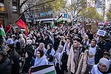 - Hundreds participated in additional protests in solidarity with Palestine in multiple countries worldwide, including major cities across the United States, Spain, Italy, Iran, Libya, Somalia, Bosnia and Herzegovina, South Africa, Australia, France, and Germany.[71] In the United States, notable demonstrations were held in New York City, Detroit,[72] Dallas,[73] Denver,[74] San Francisco, and San Diego.[75]