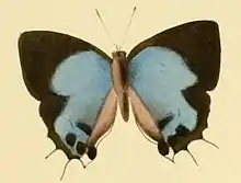 Iolaus laon, the fine sapphire, is a butterfly in the family Lycaenidae. It is found in eastern Ivory Coast, Ghana, Togo and western Nigeria.[2] The habitat consists of forests and disturbed areas such as cocoa plantations.