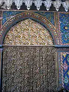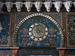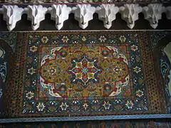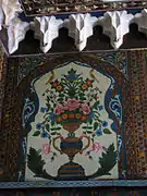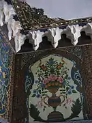 Frescoes date back to the construction period. The style is Oriental, Persian and rich in Armenian motives, which were made by Armenian masters. A striking example of this is the crosscuts left in the frescoes. The frescoes of the entrance to the arch, also feature gnats, dogs, veins, that are widely used in Armenian miniature paintings. Images and motifs on the upper part of the flower, skulls and birds are Persian.