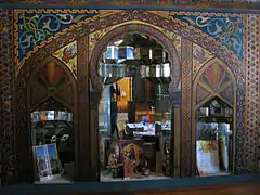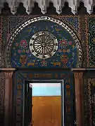 The building is one story high and is made of black tuff rocks. On the top, in the center, there is a large circular design and the upper arches of the window are covered with ornaments. The walls of the Iranian Consul's office were completely covered with frescoes. There is a mirrored prayer hall in the center of the room. There is a door to the left from the entrance, that has stairs that take you to the basement (this segment collapsed). Al. Tamanyan's son, Yuri Tamanyan, has been stationed in the building on his father's initiative. The story of the building's torch is interesting. The torch in the Consul's room was designed individually by Al. Tamanyan and ordered in Italy in 1927.