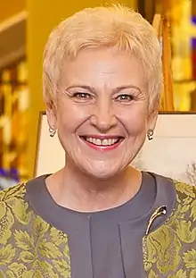 Irena Degutienė (born 1 June 1949) is a Lithuanian politician and member of the conservative Homeland Union. She is currently the Deputy Speaker of Seimas, and was twice the acting Prime Minister of Lithuania, first from 4 May 1999 to 18 May 1999 and then from 27 October 1999 to 3 November 1999. She has also been the Speaker of Seimas from 15 September 2009 to 14 September 2012, as well as Minister for Social Security and Labour from 1996 to 2000. In 1978, she graduated from Vilnius University with a degree in medicine. For almost twenty years, she worked in Vilnius Red Cross Hospital before becoming a secretary in the Ministry of Health in 1994. She was initially elected to Seimas in 1996. Degutienė is the first woman to be Speaker of Seimas in Lithuania's history.[1]