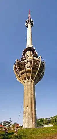 The tower was built in 1975[1] and its lower basket was partly destroyed during the NATO bombing of Yugoslavia.[2] Sources estimate that the tower was hit by over 50 missiles.[3] The damage was estimated to be at 11.5 million dollars.[2]