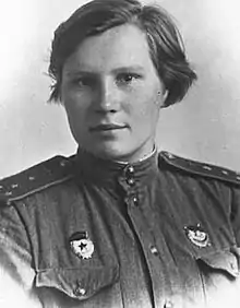Irina Viktorovna Dryagina (Russian: Ирина Викторовна Дрягина; 31 March 1921 – 9 June 2017) was botanist and veteran of the Second World War. During the conflict, she served as a squadron commissar in the 46th Guards Night Bomber Aviation Regiment until the post of squadron commissar was abolished, after which she transferred to the post of assistant chief of the political department for the Komsomol of the 9th Guards Fighter Aviation Division, commanded by Alexander Pokryshkin.