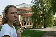 Irina Kolesnikova in front of the Royal Albert Hall. 11 May 2006, London.