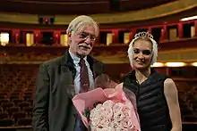 Irina Kolesnikova with Francis Lepigeon, former Director of the Theatre des Champs-Elysees. Just after performance. 22.02.2018, Paris.