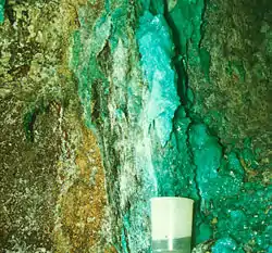 - ↑ Nordstrom, D. K.; Alpers, C. N. (1999). "Negative pH, efflorescent mineralogy, and consequences for environmental restoration at the Iron Mountain Superfund site, California". Proceedings of the National Academy of Sciences. 96 (7): 3455–3462. Bibcode:1999PNAS...96.3455N. doi:10.1073/pnas.96.7.3455. PMC 34288. PMID 10097057.