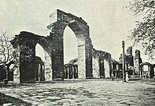 The pillar was installed as a trophy in building the Quwwat-ul-Islam mosque and the Qutb complex by Sultan Iltutmish in the 13th century.[28] Its original location, whether on the site itself or from elsewhere, is debated.[29][30]