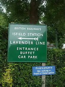 Isfield is a preserved railway station on the closed section of the Wealden Line which served the East Sussex village of Isfield near Uckfield. Originally opened in 1858, the station closed in 1969 and was sold into private hands in 1983 to subsequently become the current centrepiece of the Lavender Line, a heritage railway.