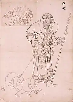 | Ininkari (乙唫葛律), chieftain of Akkeshizarasan | with spear, makiri [ja], tobacco case, and mittens, he leads two bear cubs, one a so-called "Ininkari bear"[5][10]: 158 | ![]() | ![]() |