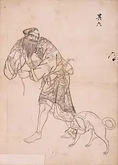 Ishūretsuzō (夷酋列像), also known as or A Series of Paintings of Ainu Chieftains[1]: 5 or Portraits of Ezo Chieftains,[2]: 9 is a series of twelve painted portraits, dating to 1790, of Ainu elders in the aftermath of the Menashi–Kunashir rebellion. They are by the Japanese artist and Matsumae Domain retainer Kakizaki Hakyō (1764–1826). Eleven of the twelve paintings survive, in the collection of the Musée des Beaux-Arts et d'Archéologie de Besançon. A number of preparatory drawings and copies are to be found in collections in Japan. The clothing worn and other accoutrements depicted help cast light on late eighteenth-century connections between the indigenous inhabitants of Ezochi, the Wajin, China, and Russia.[1][3][4] The portrait of Ininkari from the series also represents the earliest known documentation of brown bears (Ursus arctos) with white pelage, the so-called "Ininkari bears" that are to be found on Kunashir (Kunashiri) and Iturup (Etorofu) in the disputed Southern Kurils.[5]