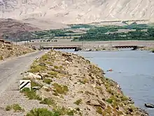 Ishkoshim (Tajik: Ишкошим), also Ishkashim (Russian: Ишкашим), is a village and a jamoat in south-east Tajikistan.[3] It is the seat of Ishkoshim District in Gorno-Badakhshan Autonomous Region. The jamoat has a total population of 7,673 (2015).[1] It lies on the river Panj, at the point where its direction turns sharply north. Ishkoshim lies opposite a town of the same name in Afghanistan, although the name of the Afghan town is normally transliterated Ishkashim. A bridge opened in 2006 links the two towns.[4] There are plans to reconstruct the 100-km highway connecting Ishkoshim to the regional capital Khorugh, which has been damaged by snow avalanches.[5]