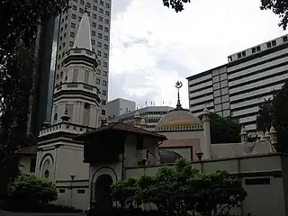The Dawoodi Bohras, a subsect of Shia Islam, are led by their spiritual leader, the Da'ie Almutlaq, who represents the twenty-first imam, Mohammed Burhanuddin. In Singapore, the Dawoodi Bohra community is served by the Anjuman-E-Burhani.[26] Bohra traders began settling in Singapore in the 1820s.[27] The Burhani Mosque, established in 1829, serves as the mosque for the Bohra community in Singapore.