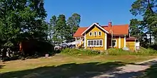 There is a private property lot on the northwestern corner of Iso Vasikkasaari, containing probably the most interesting building in the Espoo archipelago: a villa commissioned by the banker Abel Landén in 1897, with its architecture resembling a temple to Poseidon. There is a quay for public transport boats on the Temppelisalmi coast on the northwestern part of the island. On the western coast there is a former fishing cottage, Gula Villan, currently serving as a restaurant in summer time. There is also a small wooden viewing tower on the island.[3]:147–148