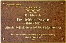 Commemorative plaque on his former home (Budapest, District XIII, Pannónia Street Nr 13).