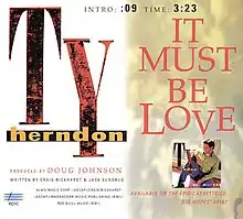 "It Must Be Love" is a song written by Craig Bickhardt and Jack Sundrud, and recorded by American country music singer Ty Herndon. It was released in August 1998 as the second single from his album Big Hopes. The song reached a peak of Number One on the Billboard Hot Country Singles & Tracks (now Hot Country Songs) charts, becoming the third and final Number One of his career. It was also his highest entry on the Billboard Hot 100, peaking at number 38 on the chart.