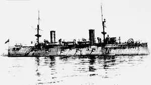 Vettor Pisani, named after the eponymous Venetian admiral,[4] was laid down on 7 December 1892 at the Royal Shipyard in Castellammare di Stabia.[2] The ship was launched on 14 August 1895 and completed on 1 April 1899.[1] She was the flagship of Rear Admiral Candiani, commander of the Cruising Squadron dispatched to China in 1900 during the Boxer Rebellion.[5] Vettor Pisani arrived there on 20 August and made port visits in Japan, Korea and Vladivostok before departing the area on 29 November 1901. She arrived at La Spezia in February 1902, but only remained in Italian waters for a year before departing for another year-long cruise to the Far East on 15 April 1903. On 14 October, the Italian Legation in Peking successfully radioed the ship off the coast of China, one of the first long-range radio transmissions to a ship. The cruiser arrived back in Italy on 13 June 1904. Nothing is known of her activities until May – June 1908 when Vettor Pisani made a short cruise in Greek waters.[6]