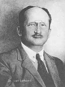 Ivan Lorković (Croatian pronunciation: [ǐʋan lǒːrkoʋit͡ɕ]; 17 June 1876 24 February 1926)[1] was a Croatian politician from Zagreb. He was a prominent member of the Croat-Serb coalition, a supporter of the Republican organization and member of the United Croatian and Serbian academic youth organization. Between 1926 and 1929, he became the leader of the Croatian Federalist Peasant Party.