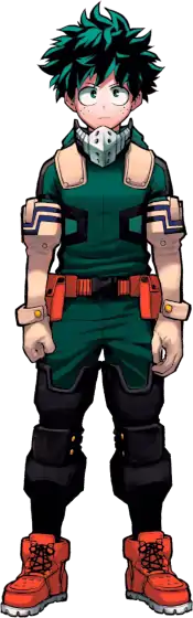 Izuku Midoriya (Japanese: 緑谷 出久, Hepburn: Midoriya Izuku), also known by his hero name Deku (Japanese: デク), is a superhero and the main protagonist of the manga series My Hero Academia, created by Kōhei Horikoshi. In the series, he is an ambitious first-year high schooler and the 9th (and current) holder of "One For All" (ワン・フォー・オール, Wan Fō Ōru), a superpower which combines eight different individual superpowers, or "Quirks", together and creates powerful bursts of energy, and also has the unique ability to be passed off to other people.[1]