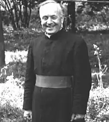 In the same year, he was appointed a pastor of the newly established parish in Narok near Opole, which included Narok and Golczowice.[4] When the village was occupied by the Red Army, he often led its inhabitants against the Russians. He found the body of Father Jerzy Greiner, murdered by the Russians in the basement of the presbytery in Skorogoszcz. Greiner was killed because he didn't have the watch that a Soviet soldier demanded from him.[5] In 1946, Wojaczek received a decree from the general superior of the congregation nominating him a provincial superior in Poland and the order to organize a province of the congregation.[1]