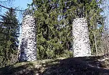 The two stone pillars of the old gallows are located west of the castle.