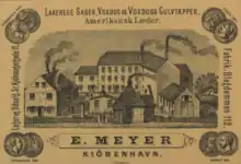 Advertisement for E. Meyer featuring the factory at Blegdamsvej 112 in Copenhagen