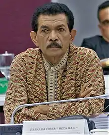 Júlio Sarmento da Costa (born 20 July 1959), also known by his nom de guerre Meta Mali, is an East Timorese politician and a member of the Democratic Party (PD). From May 2020 to July 2023, he was Minister for the Affairs of National Liberation Combatants, serving in the VIII Constitutional Government of East Timor led by Prime Minister Taur Matan Ruak.