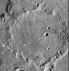 J. Herschel is a large lunar impact crater of the variety termed a walled plain crater. The crater is named after British astronomer John Herschel.[1] It is located in the northern part of the Moon's surface, and so appears foreshortened when viewed from the Earth. The southeastern rim of J. Herschel forms part of the edge of the Mare Frigoris lunar mare. To the northwest is the crater Anaximander. Bordering the northern rim is a large, unnamed lunar plain. Just to the south is the small crater Horrebow.