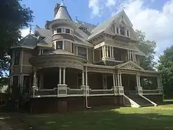It was designed by Atlanta architects Bruce & Morgan. Its NRHP nomination describes it as "a marvelous assemblage of forms perhaps best described as the Queen Anne style." It has an asymmetric front facade, and has turrets, dormers, and decorated chimneys.[3]