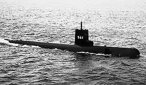 However, these small submarines have serious restrictions on their snorkeling and surface navigation capabilities, especially in stormy weather, which has become a serious problem in submarine operations in the waters near Japan. In addition, since the US Navy had changed its policy to develop a large submarine such as the Tang-class submarine, the Maritime Self-Defense Force also decided to build a larger submarine (SSL) with excellent seakeeping. Based on this, first, as a substitute ship for JDS Kuroshio, only one ship was built in the plan of 1958.[2][3]