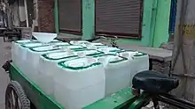 The Urban Services Programme[10] for resettlement colonies mandates that Pay and Use toilets be made available at the ratio of 1 seat per 10 families. However, the number of public toilets in the entire locality ranges from about 15–20. The number of public toilets in each block typically depends upon the size of the block. B1 has 5 toilets whereas A1 has 3 and B2 has 2. The toilets also only operate on specific times, from 6-11am and 4-8pm. Safe and free drinking water is difficult to find in this colony, as the supply water is non-potable and hard. This has led to a growing water-distilling business in the region which provide 20 liters for Rs10 on average.