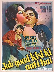 Jab Yaad Kisi Ki Aati Hai is a 1967 Bollywood film starring Dharmendra and Mala Sinha in a double role, Abhi Bhattacharya and M. Rajan. It is a love story with a little suspense. The title song "Jab Yaad Kisi Ki Aati Hai" is nicely composed.