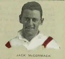 A product of Penshurst, New South Wales, Jack McCormack played with St George Dragons for five years between 1927 and 1932. He played fullback in two losing grand finals with St. George in 1927 and 1930. Good form saw him selected to play five matches for New South Wales in 1931.[2] Jack McCormack was the brother of another St. George player, Eric McCormack.