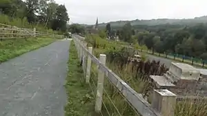 Jackfield Sidings were situated ½ mile closer to Ironbridge.[4] A set of level crossing gates in the centre of these sidings is still in situ, together with three short lengths of track side by side just forward of the crossing gates. What appears to be a platform at that location formed part of these sidings but was not associated with either of the passenger halts.[5]