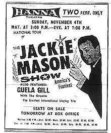 1968 ad for The Jackie Mason Show at the Hanna Theatre in Cleveland, Ohio