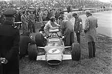 Oliver instructing officials to sort the Lotus 49 at the 1968 Dutch Grand Prix.