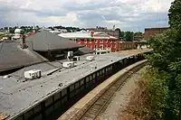 All of the locomotives were collected at Richmond, Virginia until the last one had arrived. The threat imposed on Richmond by Major General McClellan's advance up the Peninsula in May 1862 caused Captain Sharp to direct the movement of the locomotives further south to Allamance County, North Carolina, about fifty miles west of Raleigh, North Carolina. Here the large shop buildings of the Raleigh and Gaston Railroad were leased, much of the Martinsburg shop equipment installed, and the "Confederate States locomotive shops" were established and began operating, first to refit and repair the locomotives.[48]