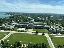 The Museum of Science and Industry overlooking the Columbia Basin in Jackson Park