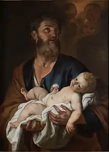 The early Dutch biographer Jacob Campo Weyerman referred to Jacob Leyssens as a history painter, which indicates that he painted in this genre.[2] A religious painting entitled St. Joseph with the Child Jesus was listed in the inventory on the death of J.J. Moretus and was made over to the city of Antwerp in 1876 when the Plantin-Moretus printing company was sold to the city.[9]