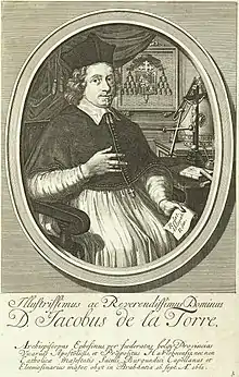 Jacobus de la Torre (1608 16 September 1661) served as apostolic vicar of the Apostolic Vicariate of Batavia (1651-1661) and titular archbishop of Ephesus (1647-1661).