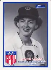 Jacquelyn Kelley [née Savage] (November 11, 1926 – May 12, 1988) was an American utility infielder/outfielder and pitcher who played from 1947 through 1953 in the All-American Girls Professional Baseball League. Listed at 5 ft 7 in (1.70 m), 140 lb., she batted and threw right-handed.[1][2]