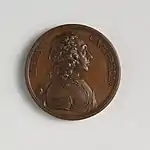 At the beginning of his time in England, Dassier printed proposals for making medals of 13 distinguished living Englishmen by subscription.[2] This series, with subjects largely from Whig political and Royal Society circles, was carried out 1740–1744.[3] The dies were engraved in London, then the medals were struck off at Geneva.[2]