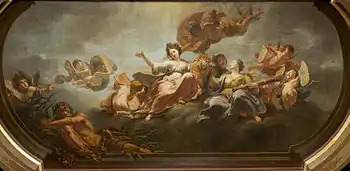 He worked initially as a copyist of the works of the leading Antwerp masters. His first signed work was a religious composition painted for the St. James' Church in Antwerp in 1709. He found it difficult to obtain regular work and wished to leave for Italy in 1710 but was prevented from doing so by his legal guardian. He married Joanna Catharina van der Cammen on 14 February 1712 and had a daughter who died in infancy.[4] De Roore received commissions for paintings and decorations in the Antwerp City Hall from around 1715. These works gained him a reputation and commissions from patrons in the Dutch Republic, where he worked in Amsterdam in 1720. He returned to Antwerp for a brief period and then took on more commissions in Amsterdam. After the death of his wife in Antwerp on 15 March 1722, de Roore sold all his property in Antwerp and settled in Amsterdam. Subsequently, he moved to Rotterdam and finally to The Hague where he became a member of the local Guild of Saint Luke. In the Dutch Republic the artist worked on multiple decorative paintings for houses in the cities of Amsterdam, Rotterdam and The Hague.[5]