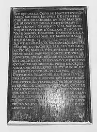 Commemorative plaque displaying epitaph of Jacques d'Étampes de Valençay