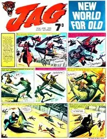 Jag[lower-alpha 1] was a weekly British comics periodical published by Fleetway Publications and IPC Magazines from 4 May 1968 to 29 March 1969. A boys' adventure comic, the title lasted for 48 editions before being merged with another title, the long-established Tiger.