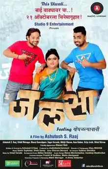 Jalsa (transl.Fun) is an 2016 Marathi language comedy film directed by Ashutosh Raj. The film stars Bharat Ganeshpure, Sagar Karande, Abhijit Chavan, Ashutosh Raj, Nikhil Wairagar, Girija Joshi and Shital Ahirrao in pivotal roles. Story of the film is written by Ashutosh Raj and Abhiram Bhadkamkar. The film is produced by Studio 9 Entertainment and Ashutosh Raj.[1] In this film, Mansi Naik will be seen performing on song "Bai Vadyavar Ya" as tribute to legendary Marathi actor Nilu Phule. This song is composed by Sameer Saptiskar, choreographed by Rajesh Bidve and sung by Anand Shinde.[2][3]