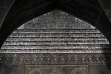 The prayer hall is five bays deep. The mosque has fifteen mihrabs.[3] Over the central mihrab is an Arabic inscription. Over the southern mihrab is a bilingual inscription, with Arabic text on top and Sanskrit text at the bottom.[4][5]